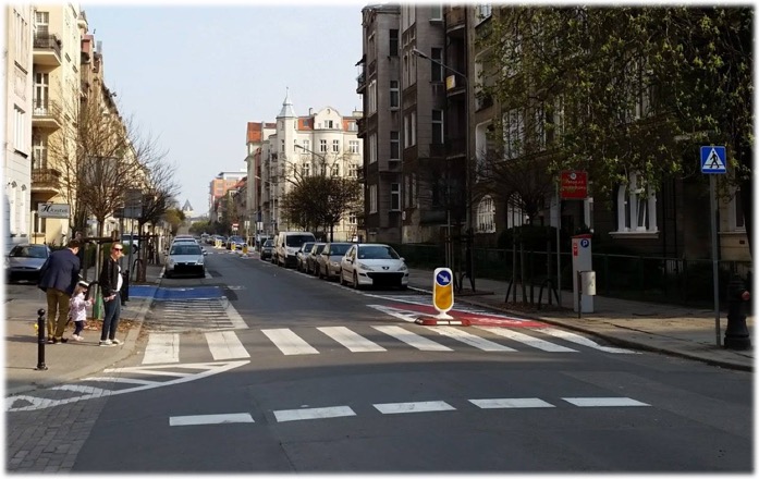 wyniesione przejścia dla pieszych przy skrzyżowaniu ul. Polnej z Szamarzewskiego;